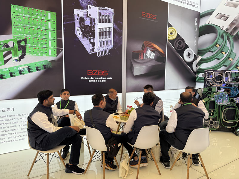 在上海新国际博览中心举办的2025中国国际缝制设备展百盛展位现场,来自海内外的客商纷致踏来。